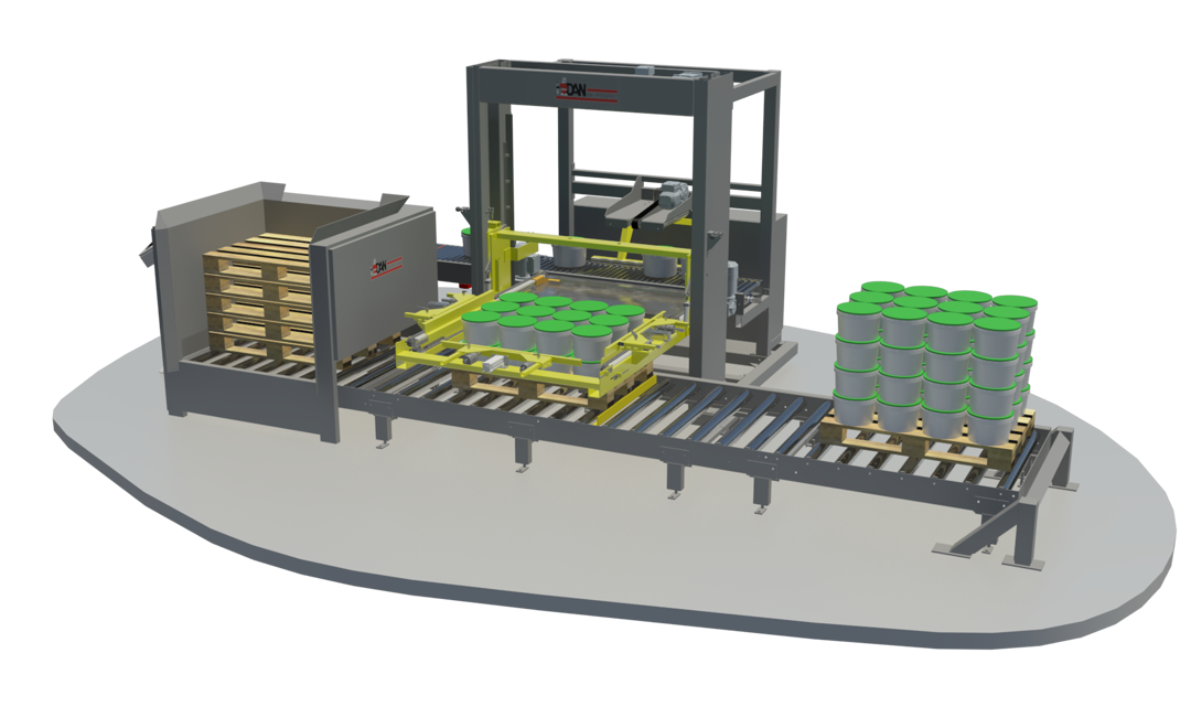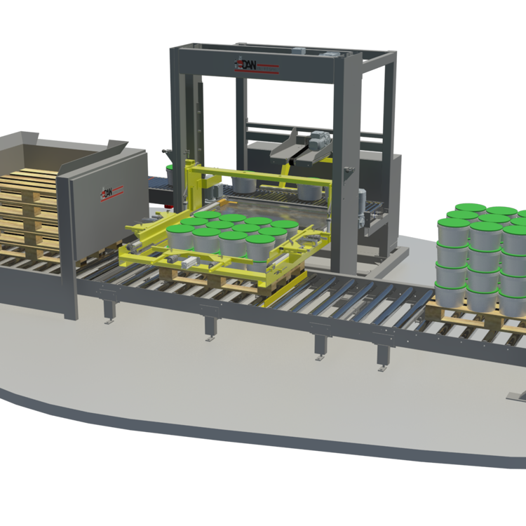 ”With the palletiser, Hain Daniels has ensured stable handling of buckets and cans, gently placing them on pallets at the end of the production line.”